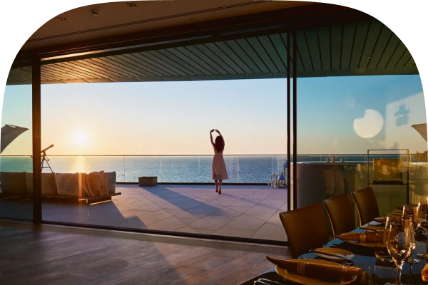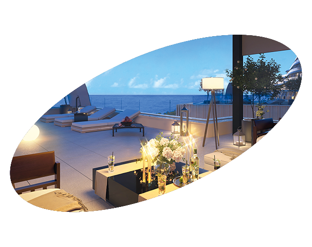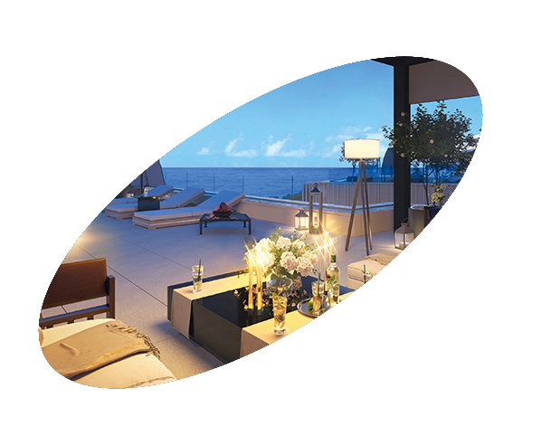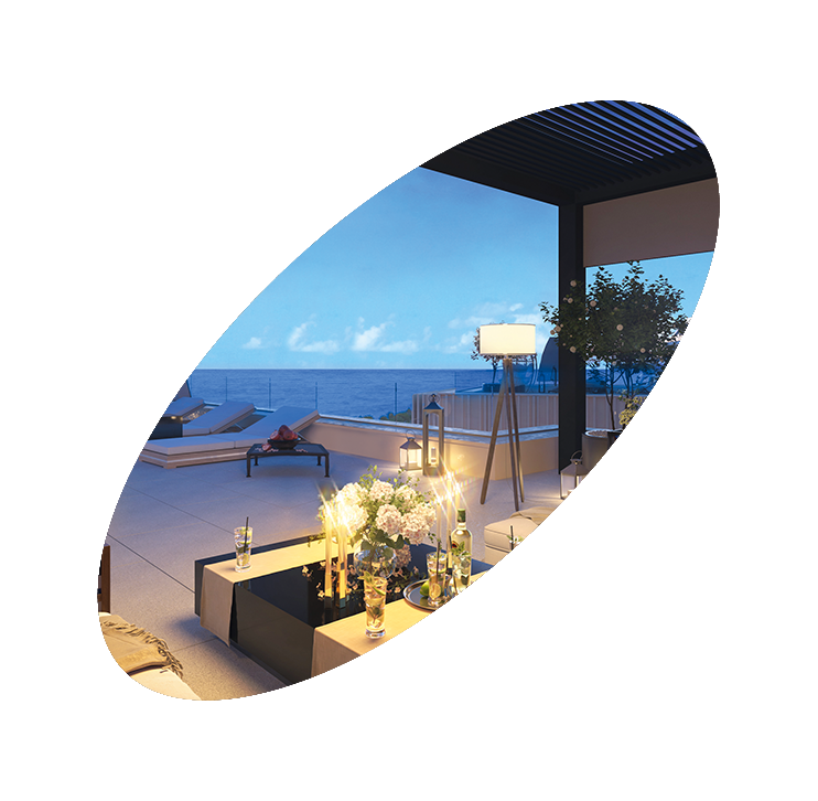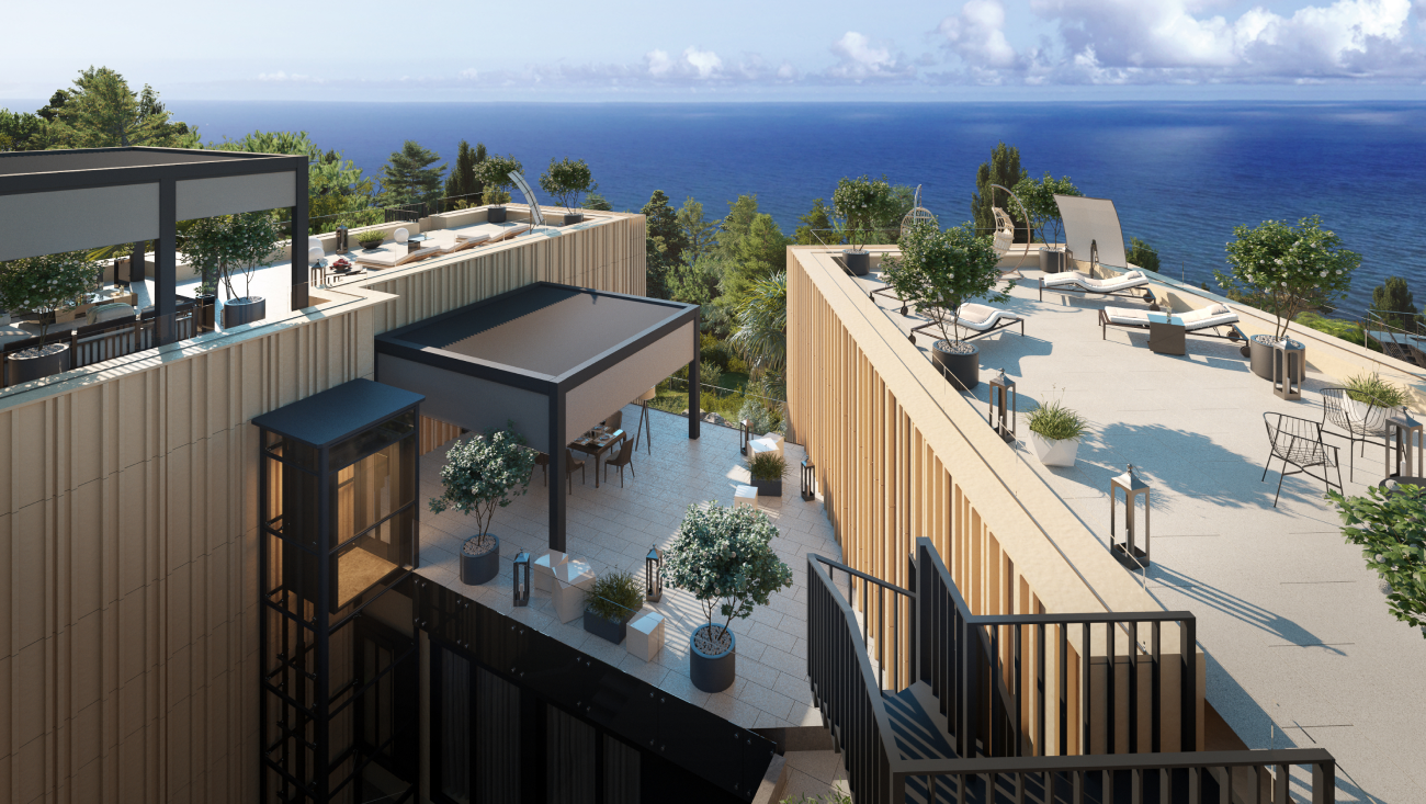 Двухуровневое пространство с панорамной террасой на крыше, куда вас поднимет персональный лифт, — особенное место: здесь перед вами расстилается бескрайняя даль моря.