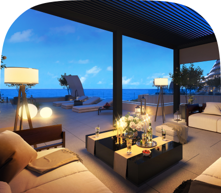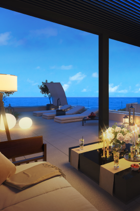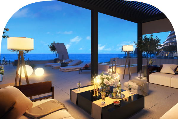 Три уровня и шесть террас, обрамляющих частное пространство, открывают живописную красоту прибрежной полосы с разных ракурсов. За завтраком вы сможете наблюдать сверкающую гладь воды, а по вечерам — встречать неповторимые закаты на собственной панорамной крыше. Для максимальной приватности владельцев предусмотрен отдельный вход и персональный лифт.